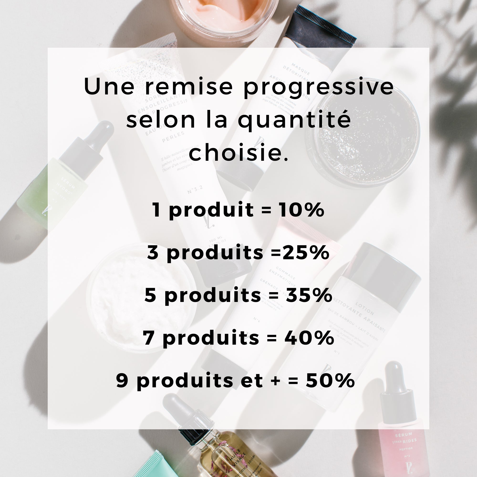 Plutôt que de les gaspiller en les jetant, nous les proposons à prix doux, avec une remise progressive selon la quantité — une façon simple et responsable de consommer la beauté, tout en réduisant le gaspillage.