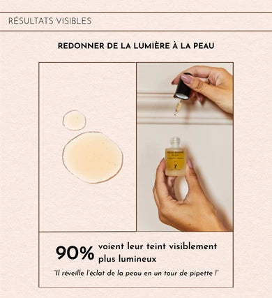 Notre Sérum Booster Éclat agit à plusieurs niveaux : la vitamine C stabilisée aide à raviver l'éclat, l'Earth Marine Water contribue à unifier l'aspect du teint en favorisant le renouvellement cellulaire, et l'Acérola aide à préserver la peau des effets du stress oxydatif. Les postbiotiques viennent compléter cette action en contribuant à renforcer le microbiome cutané pour une peau qui paraît plus résistante et équilibrée.